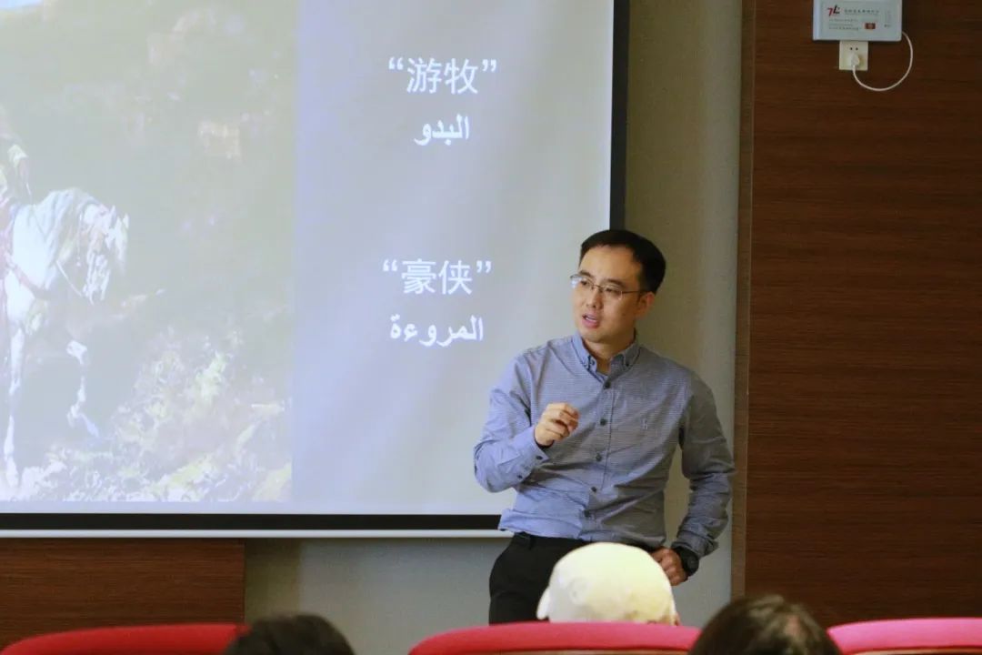 侯教授以亲身经历向我们展示了翻译的一大特色,即“语言”和“言语”。在中文中无法准确理解的字词可以用阿语区分,准确清晰。同时,他也指出了目前翻译人才的缺失,激励同学们努力学习,在中阿交往中贡献出自己的一份力量。