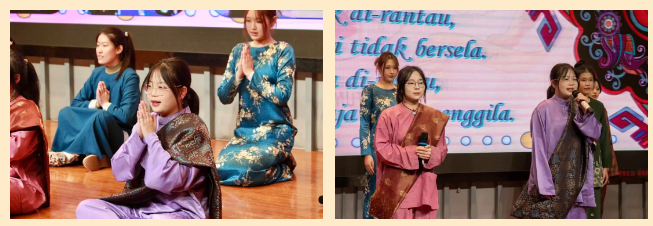 和平友好是我们秉持不变的初心使命,中伊友谊、中巴友谊、中泰友谊、中马友谊、中非友谊源远流长,历久弥新。波斯语的《爱是幸福的开始》、乌尔都语的《中巴友谊万岁》、泰语的《这份情谊永远不会变》、马来语的《中马携手一路同行》,既欣赏到波斯舞蹈的欢乐热情与中国传统舞蹈的交融碰撞,又领略到泰国泼水节的温婉尔雅和东南亚的服饰之美。菲律宾语同学生动还原了《苏禄王来访》,演绎出两国友谊的源远流长,斯瓦希里语的《中非友谊永称赞》在小提琴小提琴的优雅旋律里赞美中非之间的深厚友谊。