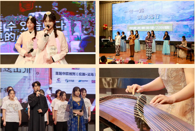 在热烈的掌声中,多语种迎新诗会正式拉开帷幕。朝鲜语的《时代之声,丝路繁花》、印尼语的《一带一路,筑梦远行》、印地语的《驼铃古道丝绸路,摇响中印文化情》诗歌,古筝与钢琴的惊艳碰撞,诉说着丝路千年时间里连接着欧亚大陆,交汇东西文明,并在新时代换发出强大的生命力。