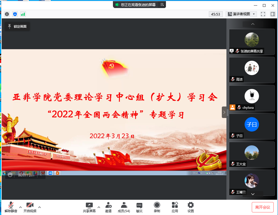 党委理论学习中心组(扩大)通过线上会议形式开展政治理论集中学习,专题学习“2022年全国两会”精神,会议由党委书记蓟光辉主持。