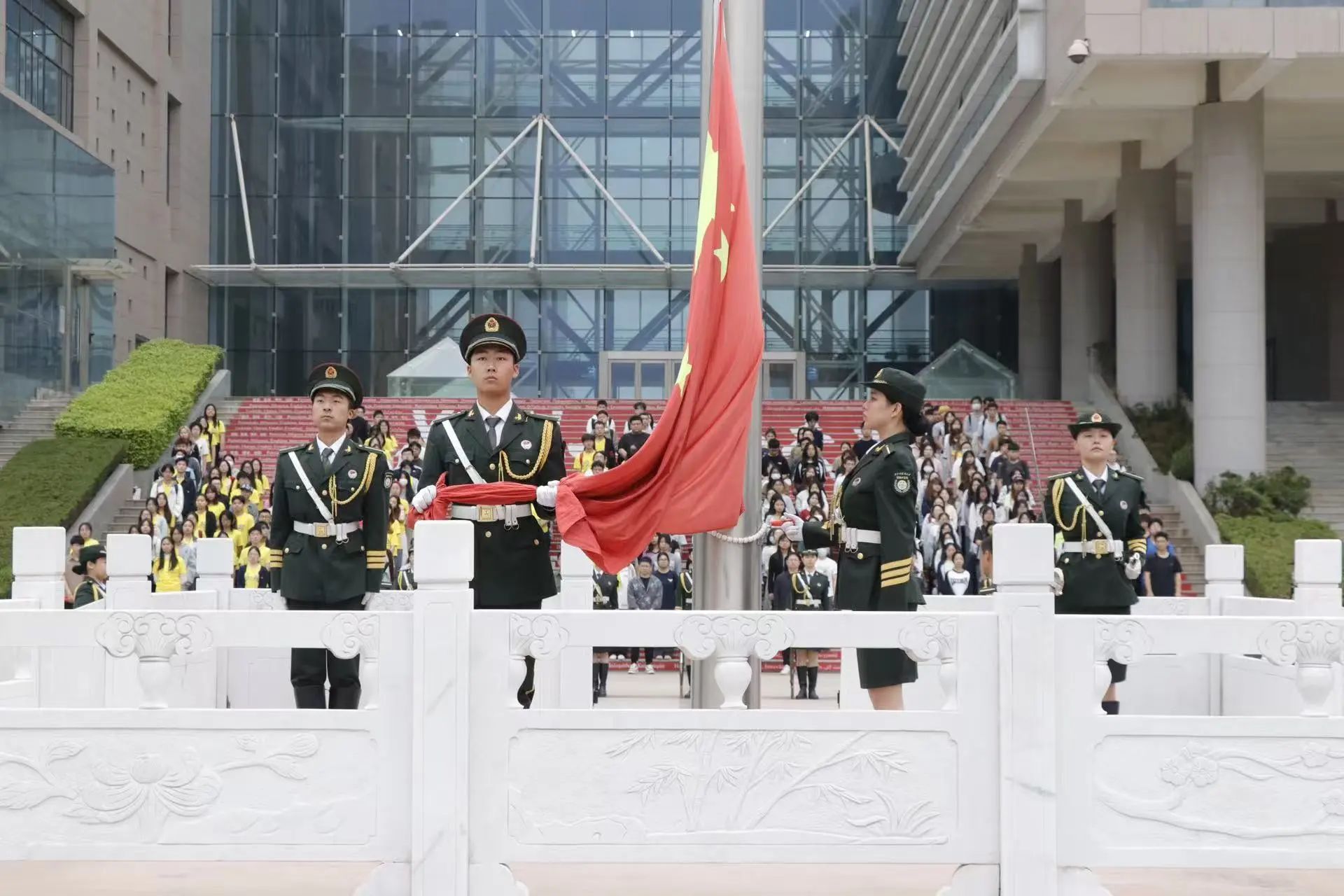 师生齐聚学校升旗广场,参加第八周升旗仪式,爱游戏官网