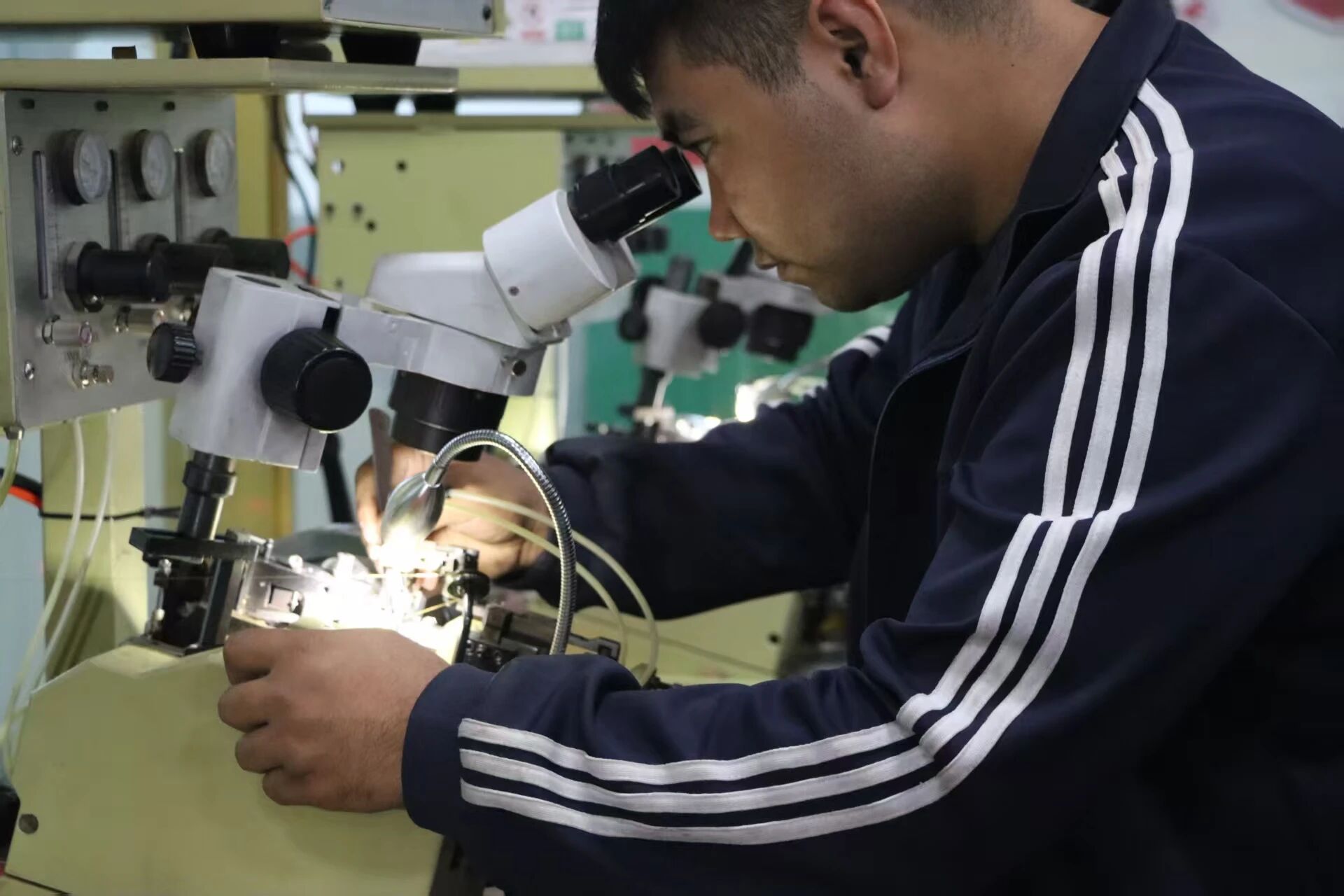 步入和田玉华旗帜制作车间,现代化气息扑面而来。精密流水线上,充电器、耳机等产品有序流转,宛如光之河流。员工们身着整洁工装,目光如炬,专注于每一个微小焊点与接口,千锤百炼的技艺与“品质即信仰”的严谨质检,无声诉说着企业的精益求精。移步阿勒屯巴格工坊,传统金银锤揲技艺在当代车间焕发新生,匠人专注的眼神与精准的刻刀游走,火花跳跃间凝结世代匠心,科技赋能与传统智慧在此交相辉映,勾勒出企业扎根边疆、欣欣向荣的坚实图景。