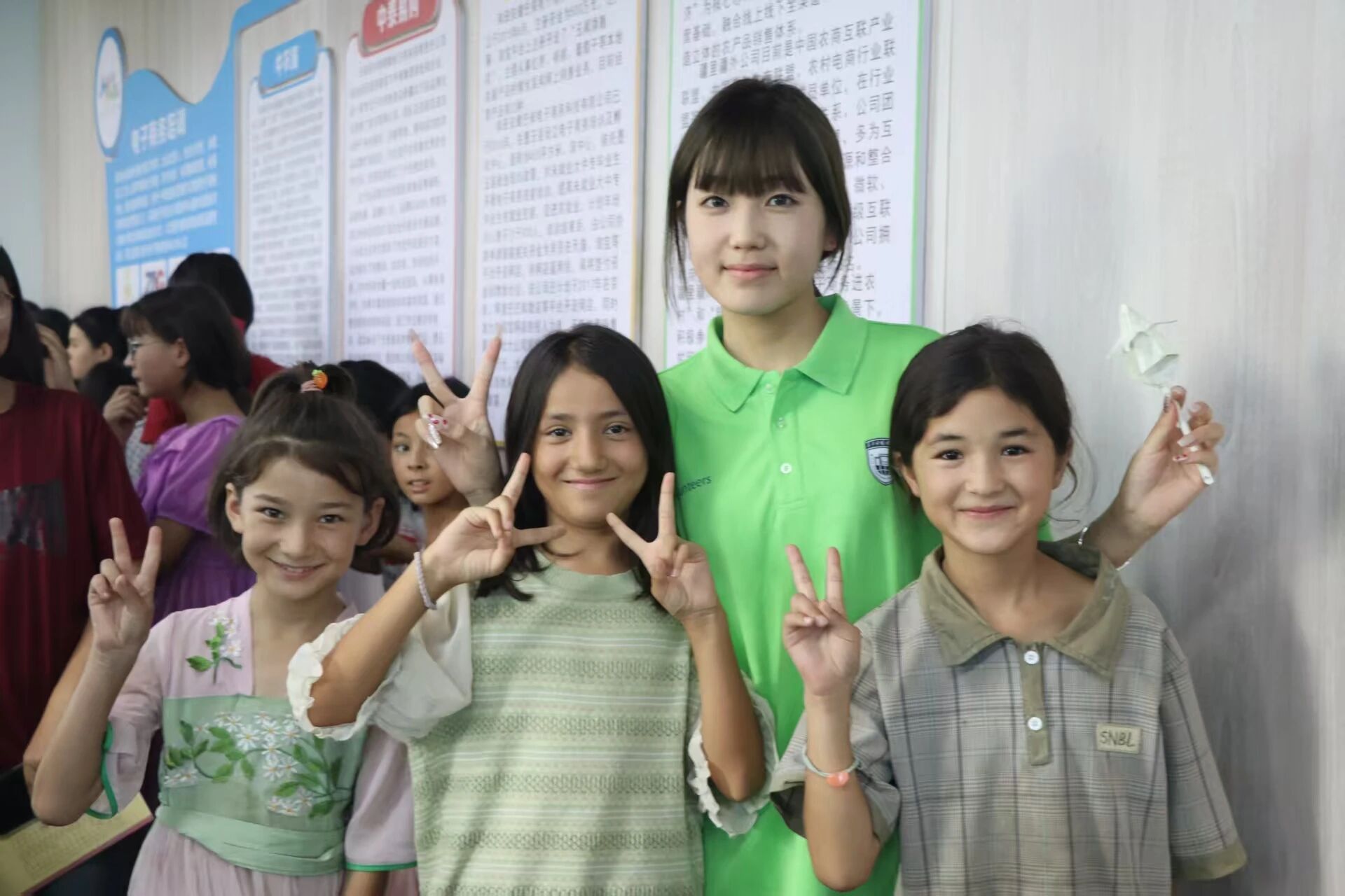 今日之行,是实践团“语润乡村”使命的温情注脚,更是铸牢中华民族共同体意识的生动实践。 从笔墨纸砚间的文化浸润,到丝路历史的深情回望;从巧手折纸的梦想放飞,到踏歌共舞的民族团结;从歪歪扭扭的汉字祝福,到飞奔而来的不舍身影——我们深切感受到,在这片辽阔的边疆热土上,孩子们如大漠中的春蕾,渴望着知识的浇灌与爱的滋养。