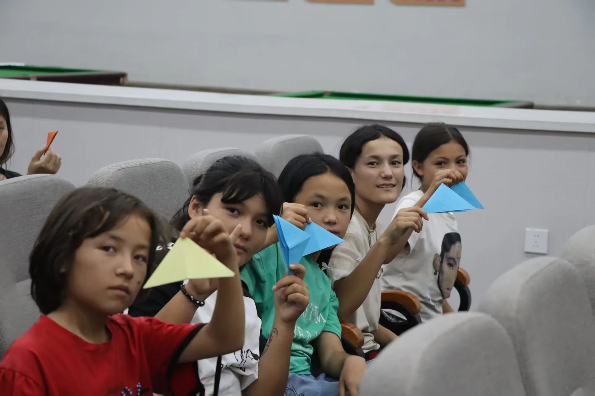 午后暖阳,巧手筑梦。 下午课程在手工创作中展开。实践团成员悉心指导,孩子们巧手翻飞,纸飞机载梦腾空,千纸鹤寄托祝福,爱心传递温情。志愿者俯身指导,耐心相伴。当纸飞机奋力掷出,纯真的梦想也随之翱翔。孩子们把手中的飞机扔出,就如同放飞梦想一般,纯粹,奋力,一飞冲天。