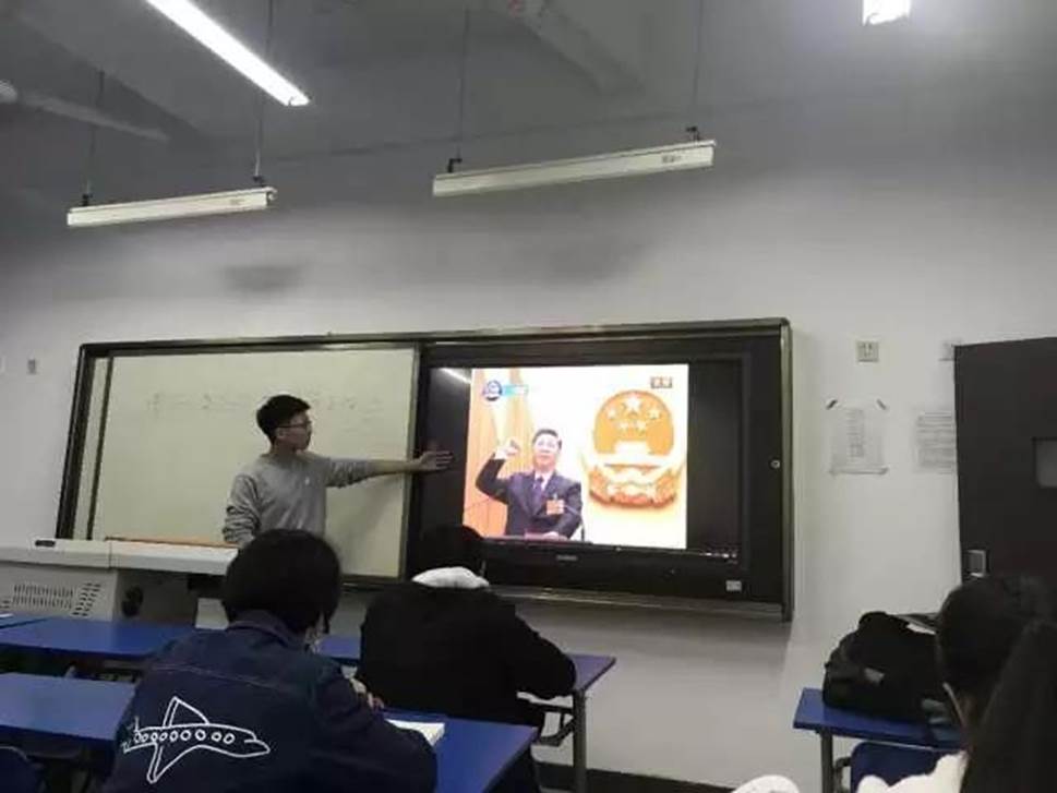 3月22日晚,朝语2班首先举行主题班会,同学们共同观看了宪法修正案投票现场以及习近平主席宪法宣誓仪式的视频,更加直观地了解了国家时政时事。
