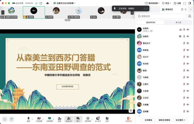 讲座结束后,张静灵老师耐心解答了师生们关于田野调查的疑问,包括如何让当地人接受采访、如何克服语言障碍以及田野调查所需的设备等问题。本次线上讲座不仅加深了同学们对东南亚田野调查的理解,还为小语种专业的师生们提供了多样的研究视角,为今后开展相关研究提供了理论方向和实践指导。