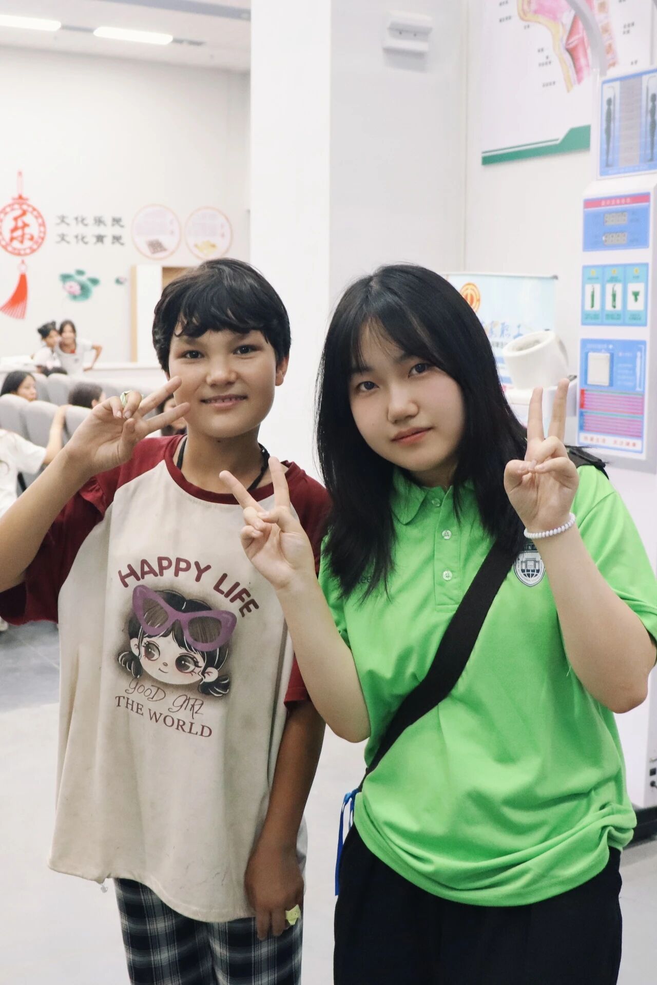 第二天下午的结课活动格外热闹。孩子们表演了刚学的舞蹈,还把自己折的爱心送给我。活动快结束时,突然有几个小女孩怯生生地走到我面前,小声问:“老师,能和你拍张照吗?”我愣了一下,连忙把相机递给队友。还没等我摆好姿势,更多孩子围了过来,小小的身影挤成一团,叽叽喳喳地喊着“老师看这里”。镜头按下的瞬间,我仿佛被幸福包围。送孩子们回家的路上,充满欢笑,拉着我的手的女孩仰着头对我说:“老师,我今天看你给大家拍了好多好多照片,可是你自己都没有拍。”我顿了顿,“我也很喜欢给大家拍照片呀。”