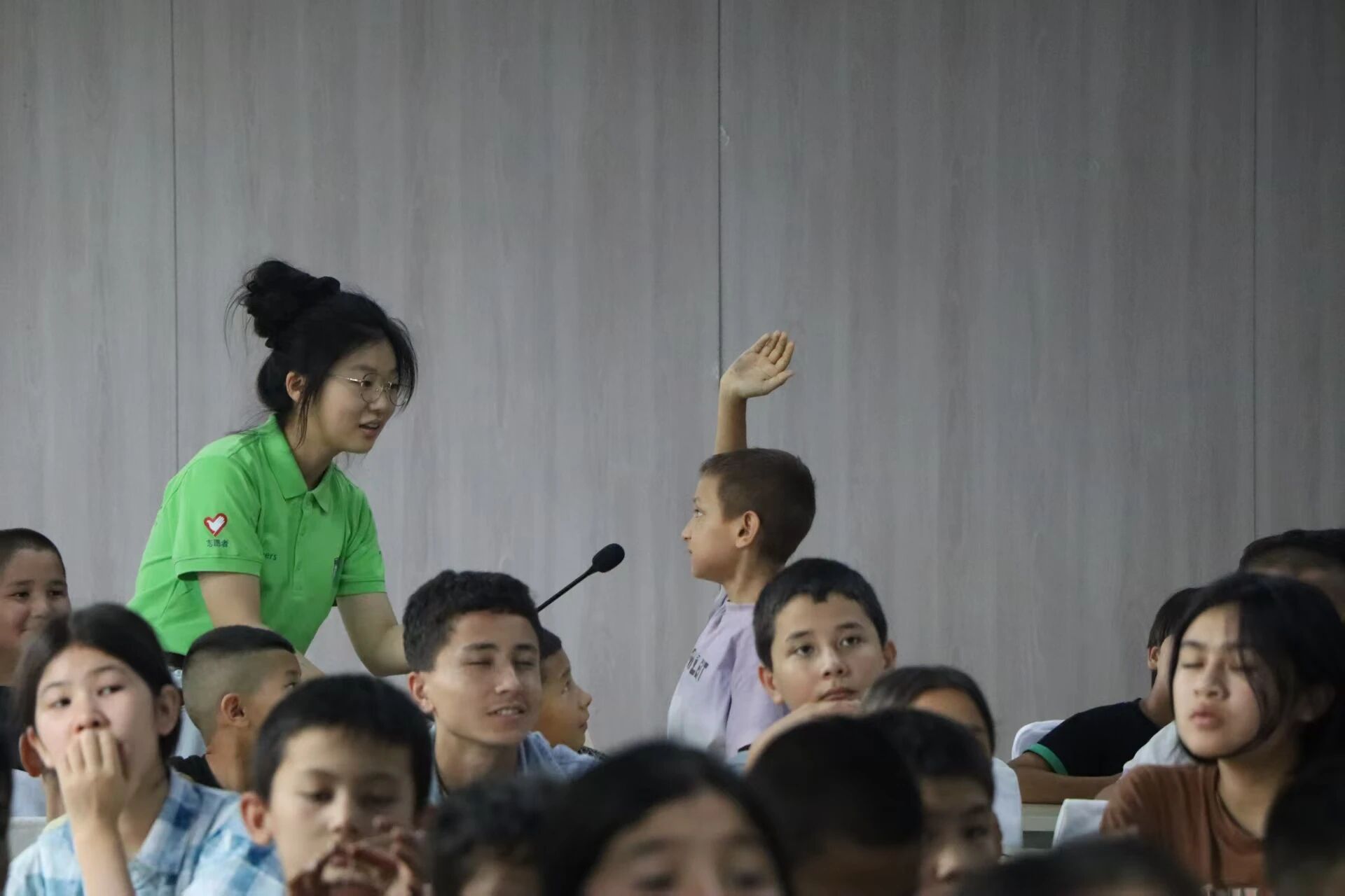 “职引边疆·语润乡村”实践团于7月25日走进墨玉县电子产业园区儿童之家,为当地八十余名中小学生带来了一场融合语言文化、艺术体验与情感交融的暖心支教活动,在实践征程的最后一日,书写下最动人的篇章。