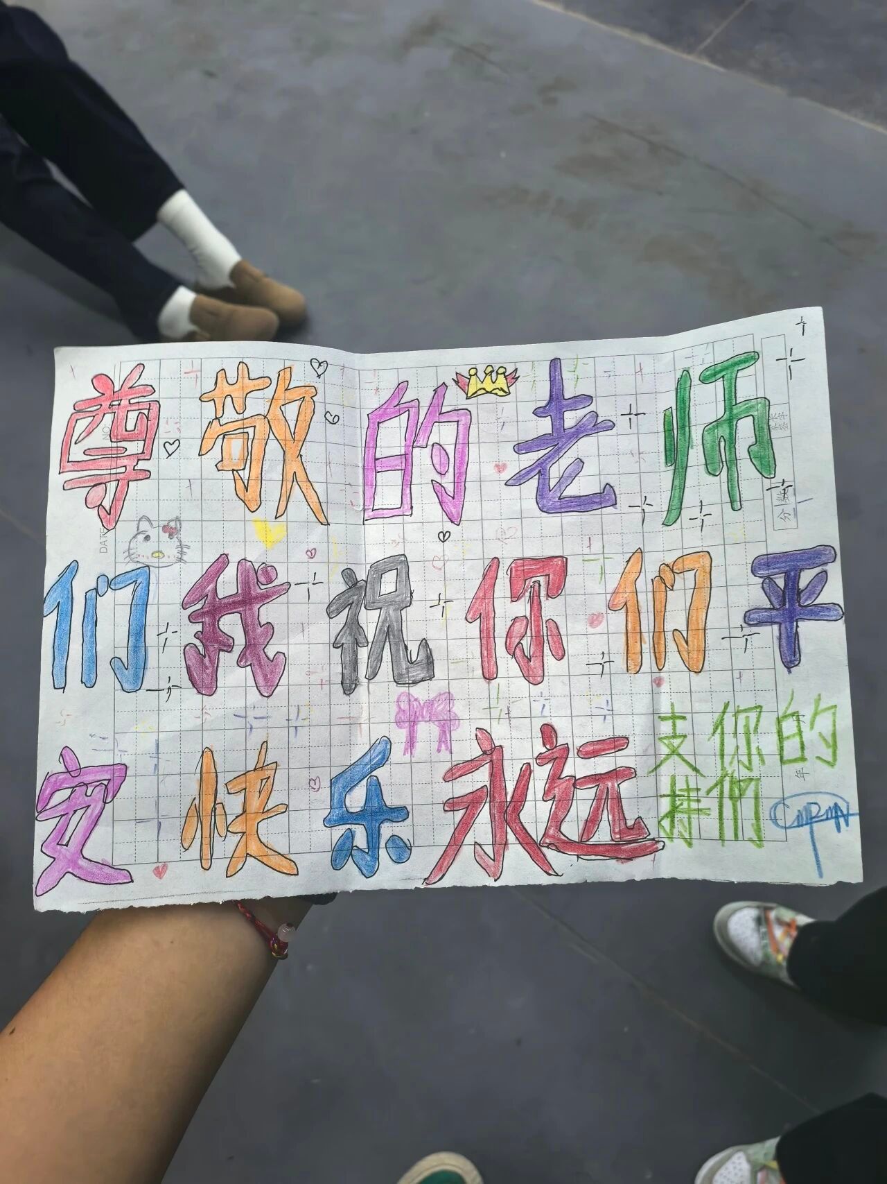 纸短情长,难舍难分。 之后孩童们便拿着刚刚叠好的纸飞机或是爱心,挨个找自己喜欢的老师去要签名。我们从未被这样肯定过,每写下一遍名字,心中的成就感与幸福感便多一分。这之外还被可爱的孩子们争先恐后拉着,一起拍合照。还有的幸运的队员,被小孩子偷偷塞了准备的小礼物,或是小玩具,或是小发卡。而且每位队员都收到了来自一个腼腆的小姑娘的,一封用歪歪扭扭的汉字凑成的小信。“祝我亲爱的漂亮老师:身体健康,万事如意,永远18岁。——您的同学:布阿依谢姆。”