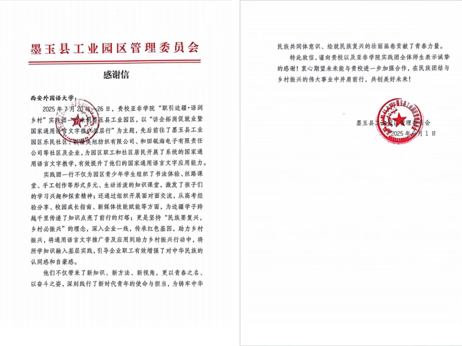 收到新疆墨玉县工业园区管理委员会感谢信,肯定爱游戏官网