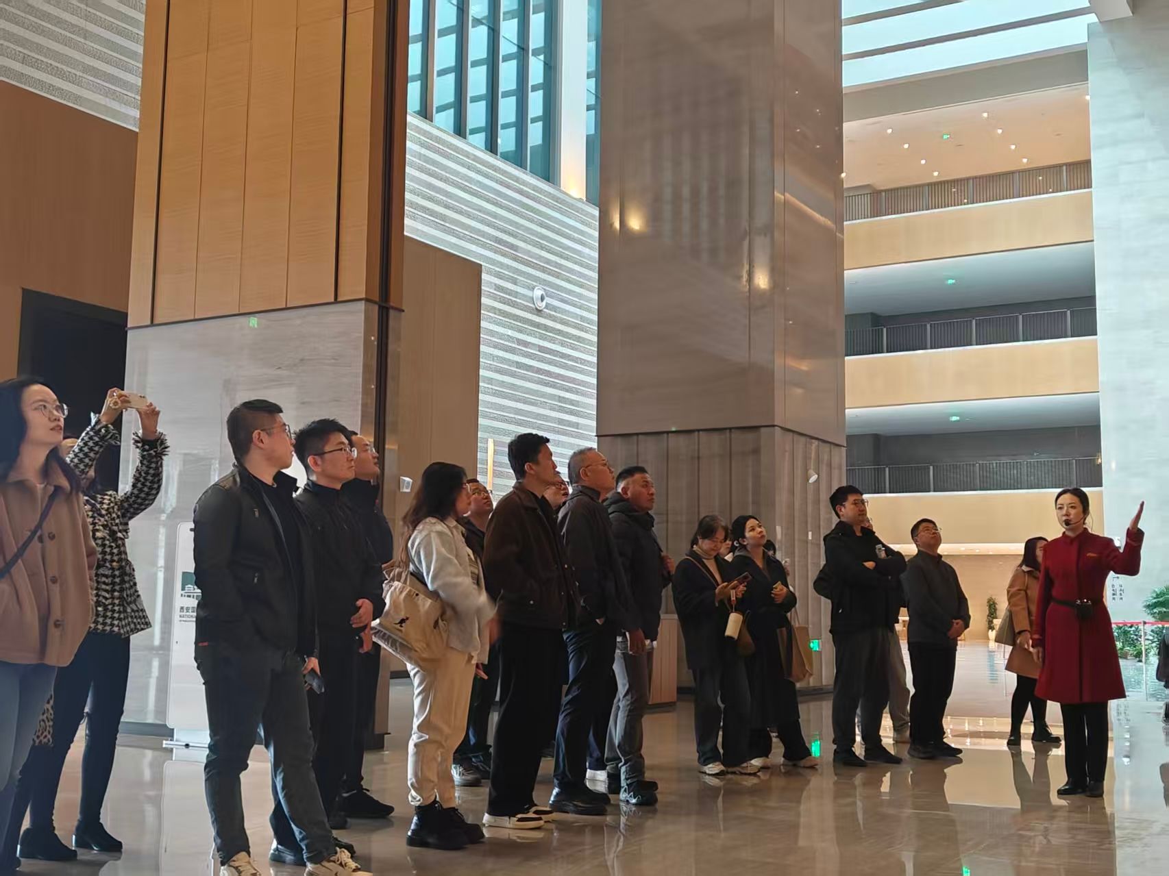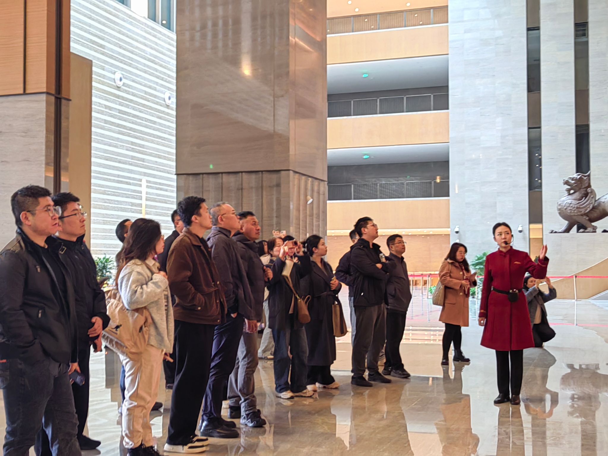 走进国家版本馆核心建筑文济厅,宽90米、高20米的巨型通顶书墙瞬间震撼全场,五万余册精品图书整齐陈列,彰显着中华文化的磅礴气势。师生们认真聆听讲解,深入了解场馆“一总三分”的战略布局、“汉唐气象、中国精神”的设计理念,深刻认识到版本馆作为文明传承载体的时代价值。